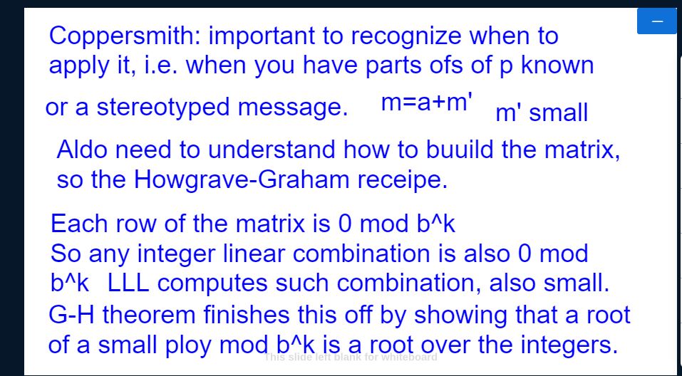 and what you need to know about the Coppersmith method. I took