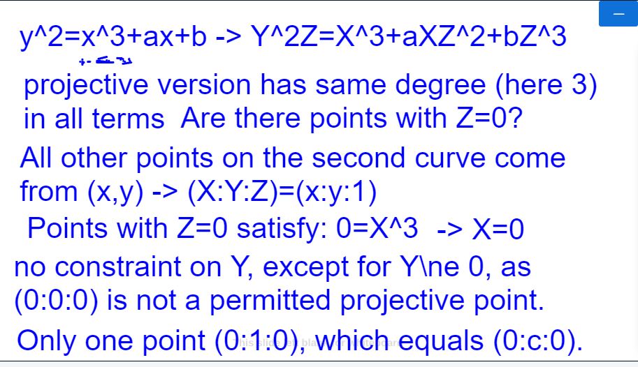 screenshot regarding the point at infinity.