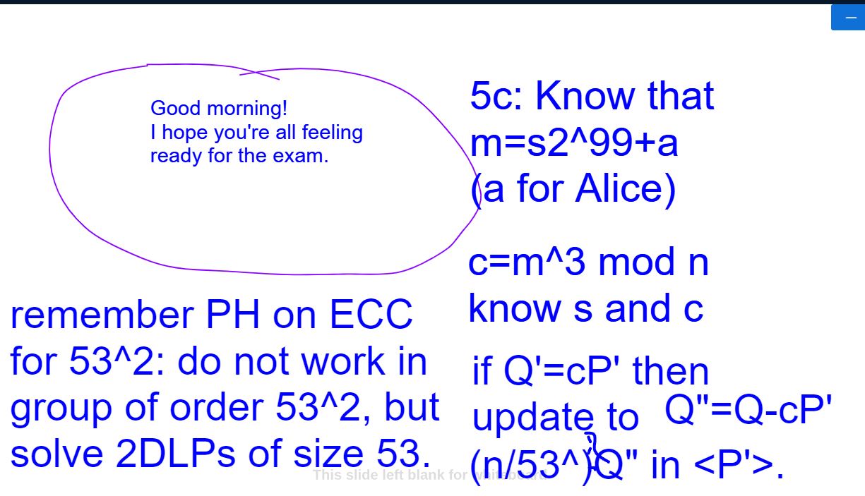 In the end the questions covered the Pohlig-Hellman attack and